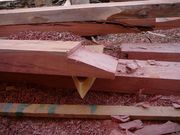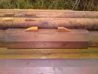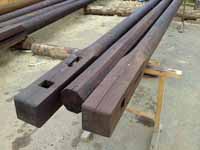 Již při příchodu k truhlárně se mi rozbušilo srdce,když jsem uviděl pně a ráhna,která byla před ní vyskládána.V pátek jsme začali připravovat pně stěžnů,aby se v sobotu daly ořezat na osmihran: